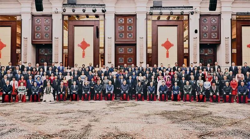 2025年9月23日下午,中共中央总书记、国家主席、中央军委主席习近平在乌鲁木齐亲切接见新疆各族各界代表,并同大家合影留念。新华社记者 燕雁/摄