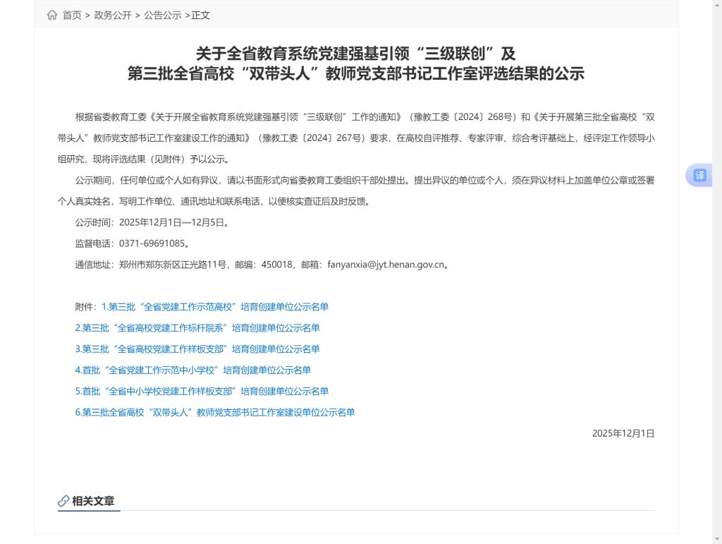近日,从河南省委教育工委传来喜讯,在全省教育系统党建强基引领“三级联创”活动及第三批高校“双带头人”教师党支部书记工作室评选中,师范学院党总支成功入选“全省高校党建工作标杆院系”创建单位。此项荣誉标志着我校在省级党建“标杆院系”项目上实现了历史性零的突破,是学院党建工作继2021年教工第一党支部获评“省级样板党支部”后的又一重大里程碑。
