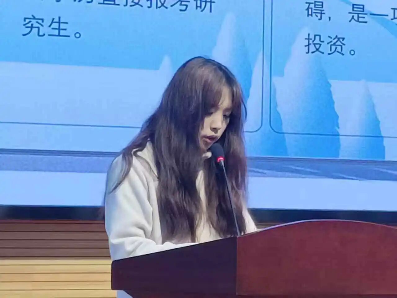 她讲到首先要有明确的目标与规划,要确定自己的目标院校和专业,深入了解各个院校的招生政策、历年的分数线和录取比例等信息,结合自身的情况做出选择。一旦确定目标,就要制定详细的学习计划,她将备考时间划分为:基础学习、强化巩固、充分复习三个阶段,并从各阶段举例说明了具体实际的学习方法。