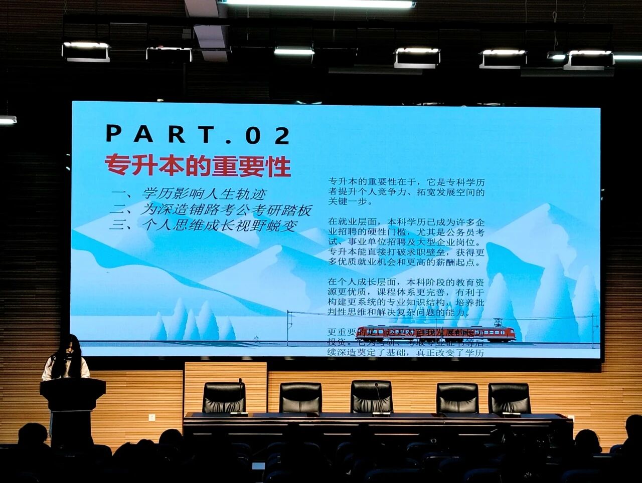 最后学姐对准备专升本的学生说:“专科不是终点,是通往高处的跳板,那些早起背书的清晨,深夜刷题的星光,终会化作笔下的答案,带你跨越山海,拥抱本科新体验。”
