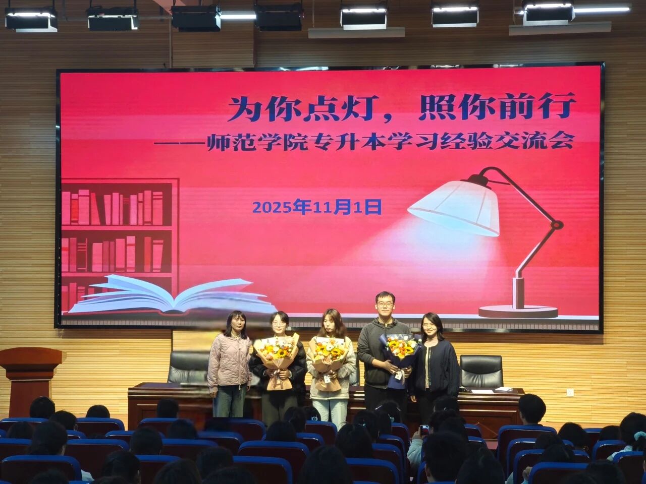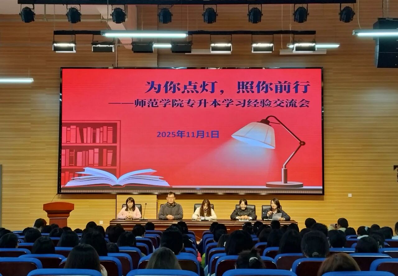 2025年11月1日,在灵凤湖校区4号楼41101报告厅进行了“为你点灯,照你前行——师范学院专升本学习经验交流会”。此次交流会旨在为有志于通过专升本考试继续深造的同学搭建一个学习交流平台,通过优秀学子的经验分享,照亮前行的道路。