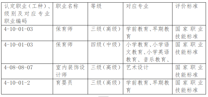 (四)原则上一个专业只能申报、认定一个与本专业最匹配的职业(工种)。