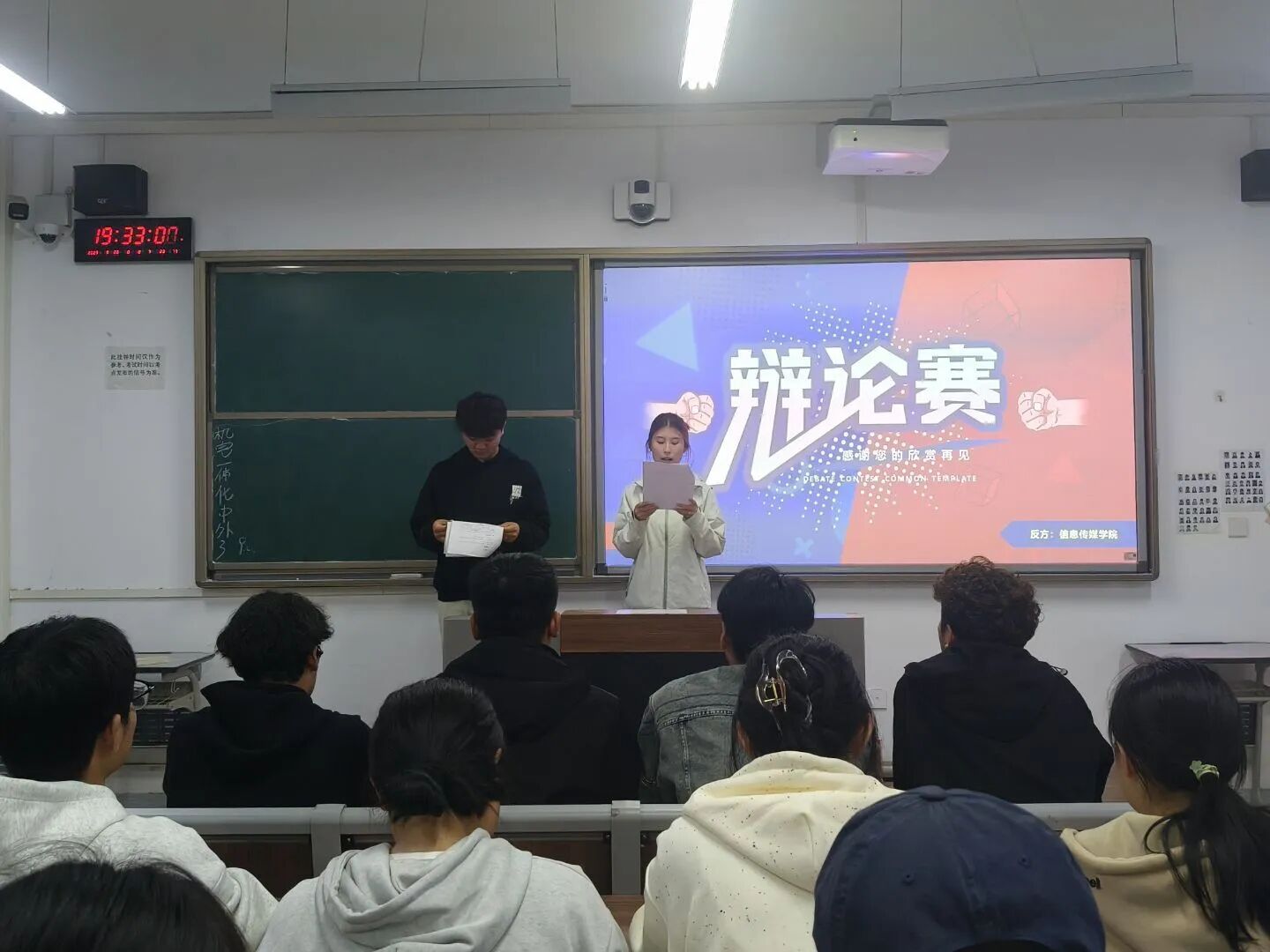 最后,主持人以“辩以明理,论以求真”作结,强调辩论赛是生动的法治课堂,既加深了同学对法治精神的理解,也激励大家深化法治认知,做法治的崇尚者、遵守者与捍卫者。