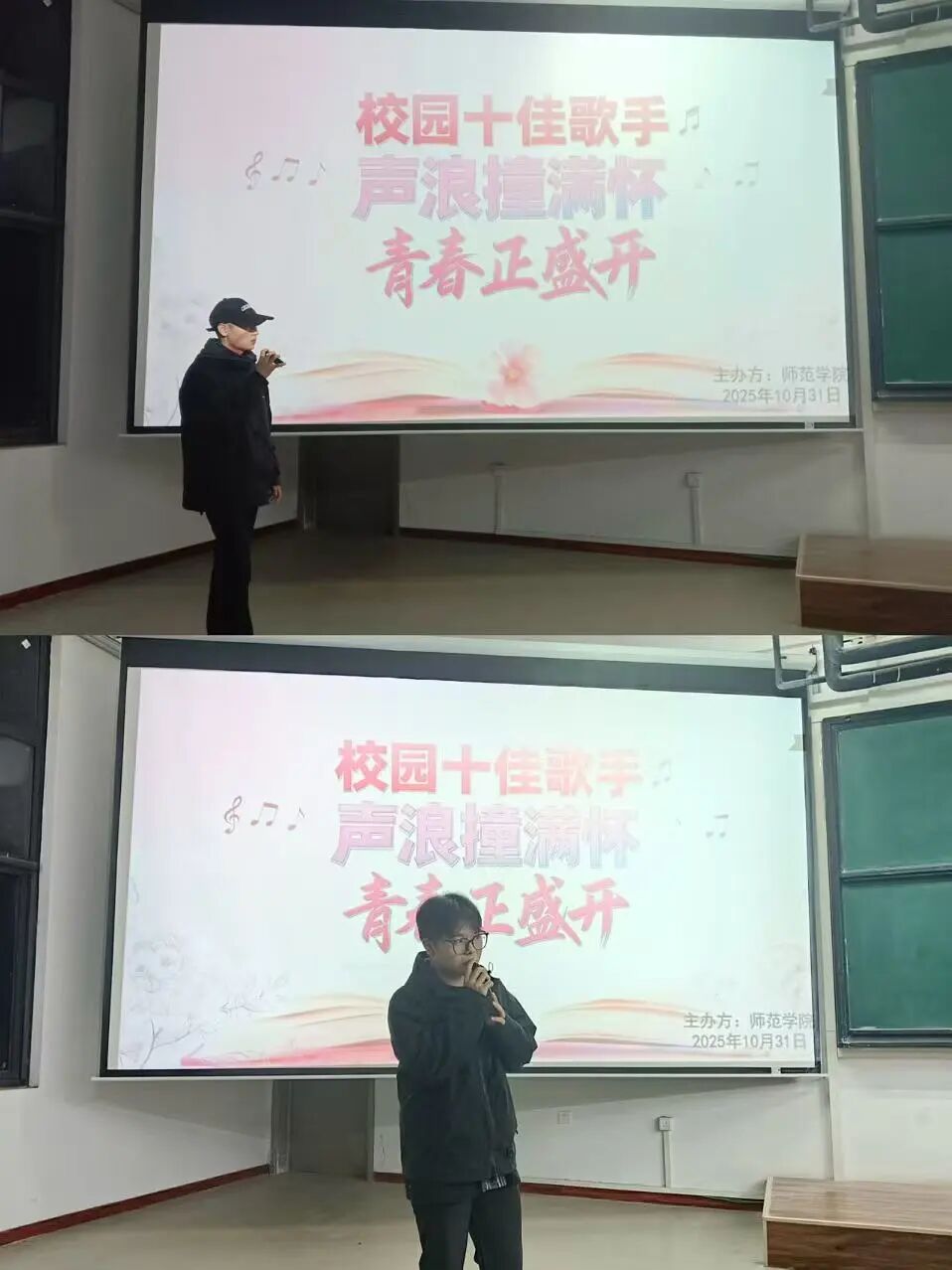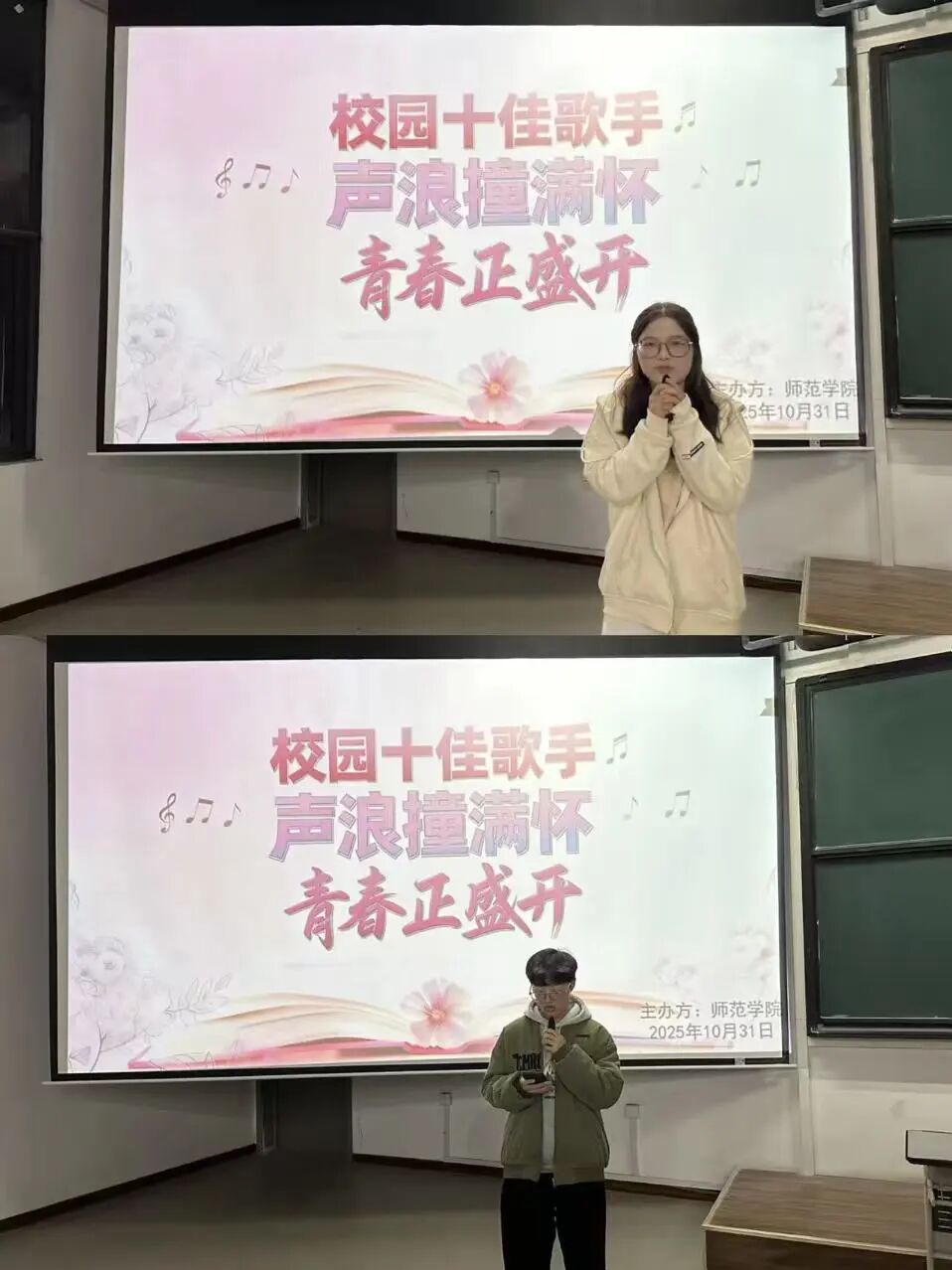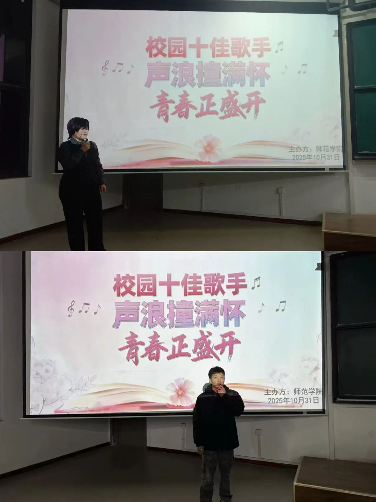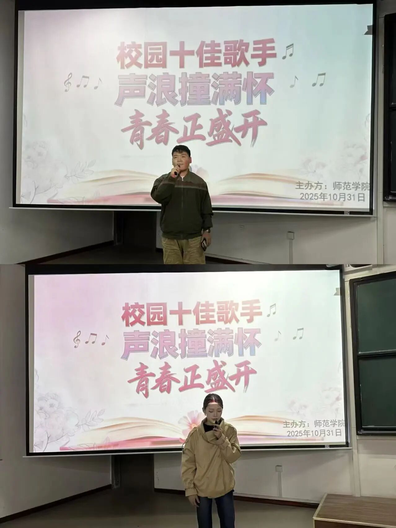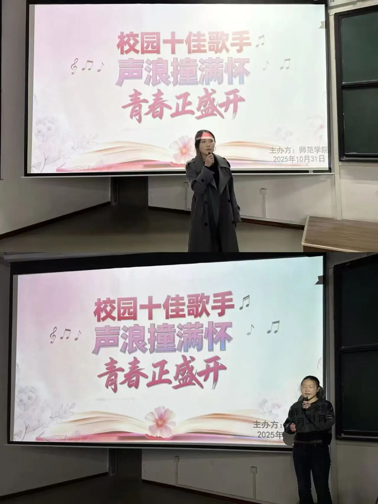 为加强校园文化建设,丰富学院师生的课余生活,彰显时代精神,激发青年活力。2025年10月31日,师范学院于41113教室举办“校园十佳歌手大赛”初赛选拔。此次比赛吸引各年级、各专业学子踊跃参与,用歌声传递热爱,以旋律书写青春。