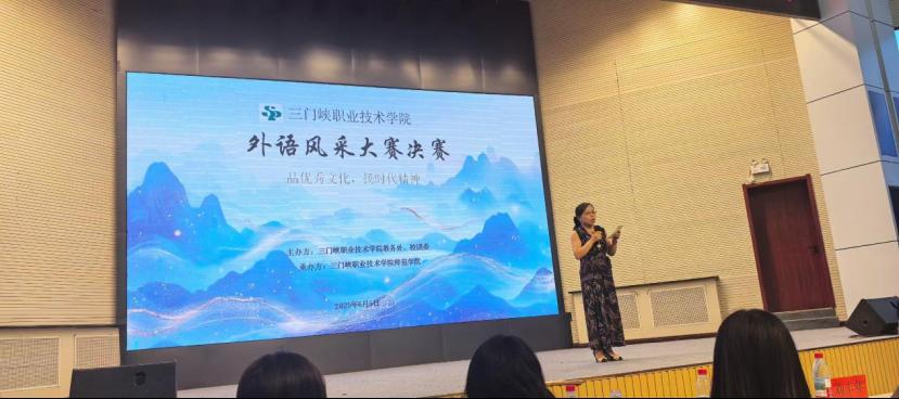 2025年6月5日下午3:00,由三门峡职业技术学院教务处和校团委主办、师范学院承办的“品优秀文化,扬时代精神”外语风采大赛决赛在天鹅湖学术报告厅隆重举行。本次大赛旨在通过语言展示优秀文化,弘扬时代精神,为学生们提供一个展示外语能力与跨文化交流能力的平台。