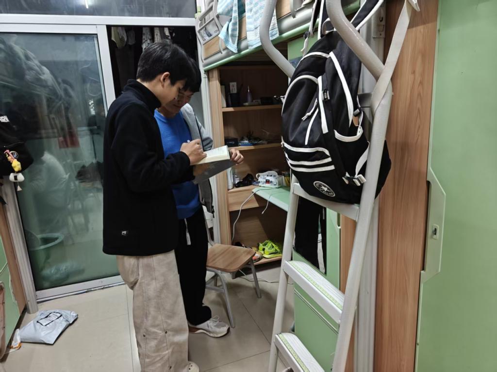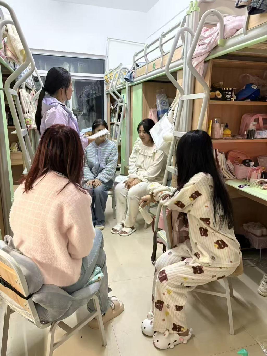 没有严肃的会场,没有生硬的流程,宿舍里的谈心更像是一场“专业交流会”。有同学不好意思说“怕问简单问题被笑话”,班委们笑着回应“我上周也卡在这里,咱们一起琢磨”;有同学担心“作业跟不上进度影响成绩”,班委们则结合自身经验,分享“任务拆解法”“小组互助学习”等实用方法。这种“懂专业、知痛点”的倾听,让同学们放下顾虑,把“不敢跟老师说的话”“不好意思问同学的事”,都敞开心扉讲了出来。